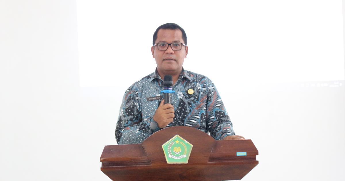 MOROTAI – (Humas Kemenag Morotai) – Kepala Kantor Kementerian Agama (KakanKemenag) Kabupaten Pulau Morotai, H. Abdurachman Assagaf, M.Pd.I. menghadiri sekaligus memimpin rapat evaluasi Perjanjian Kinerja (Perkin) 2025 dan Pakta Integritas Komitmen Kerja (PIKK) Tahun 2026 yang berlangsung di Aula PLHUT pada, Kamis (5/2/2026). Kegiatan ini dihadiri pejabat eselon IV, para kepala KUA, kepala madrasah negeri, serta seluruh ASN di lingkungan Kemenag Morotai.
