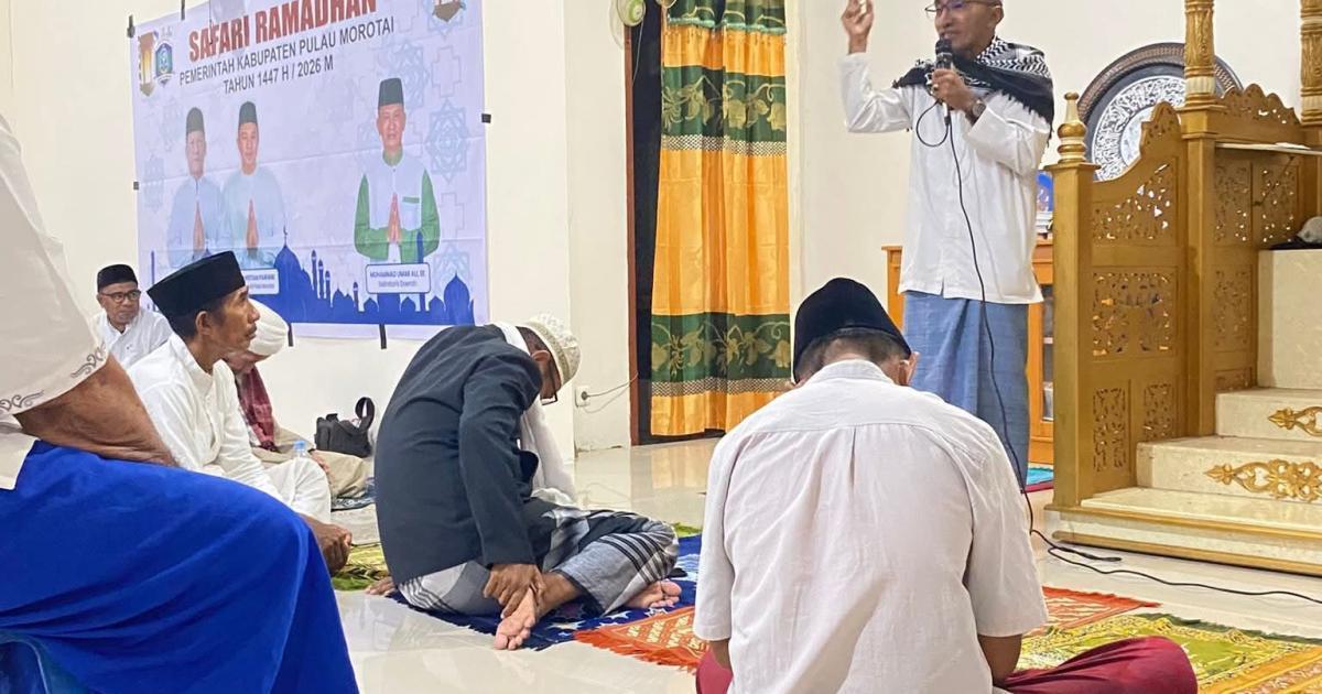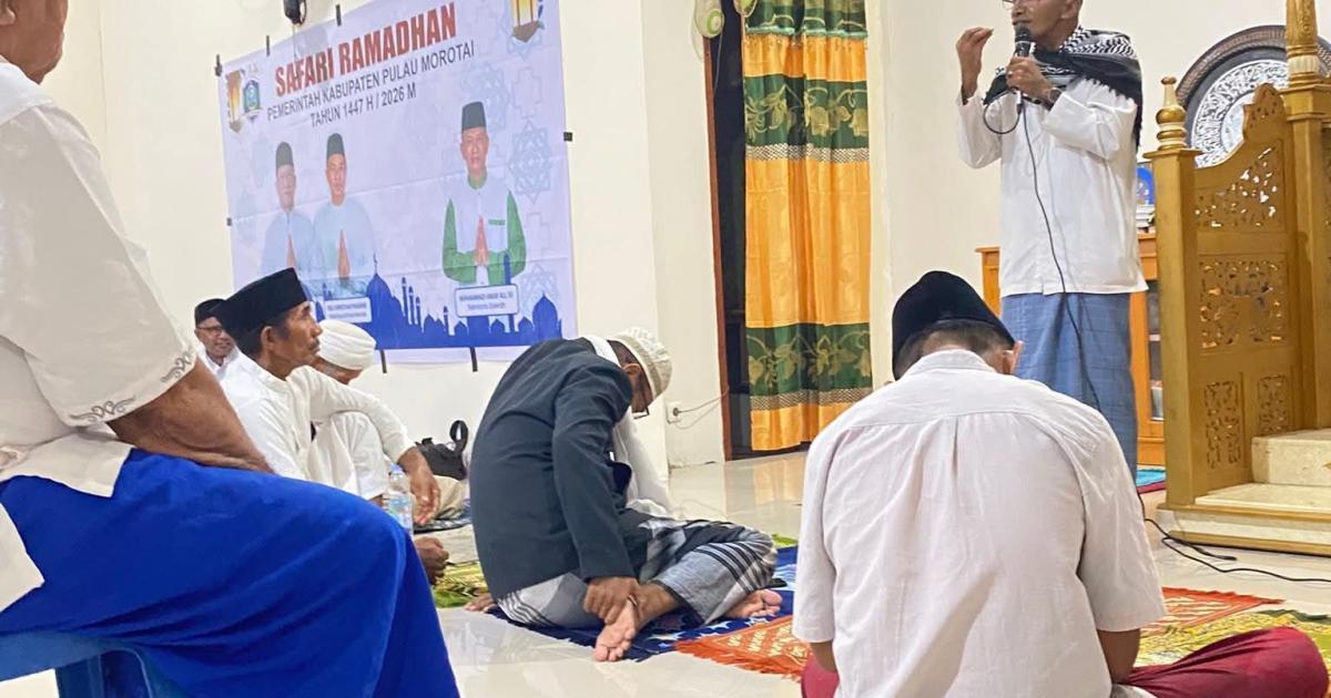 Morotai – (Humas Kemenag Morotai) – Kepala Sub Bagian Tata Usaha Kantor Kementerian Agama Kabupaten Pulau Morotai, H. Musanif Sibua, S.Ag., MM, yang tergabung dalam Tim Safari Ramadhan Pemerintah Daerah Kab. Pulau Morotai melanjutkan kegiatan dakwah Ramadhan pada hari kedua di Kecamatan Morotai Timur. Kegiatan tersebut berlangsung di Masjid Raudhatul Jannah, Desa Sangowo Timur, Kamis (5/3/2026).
