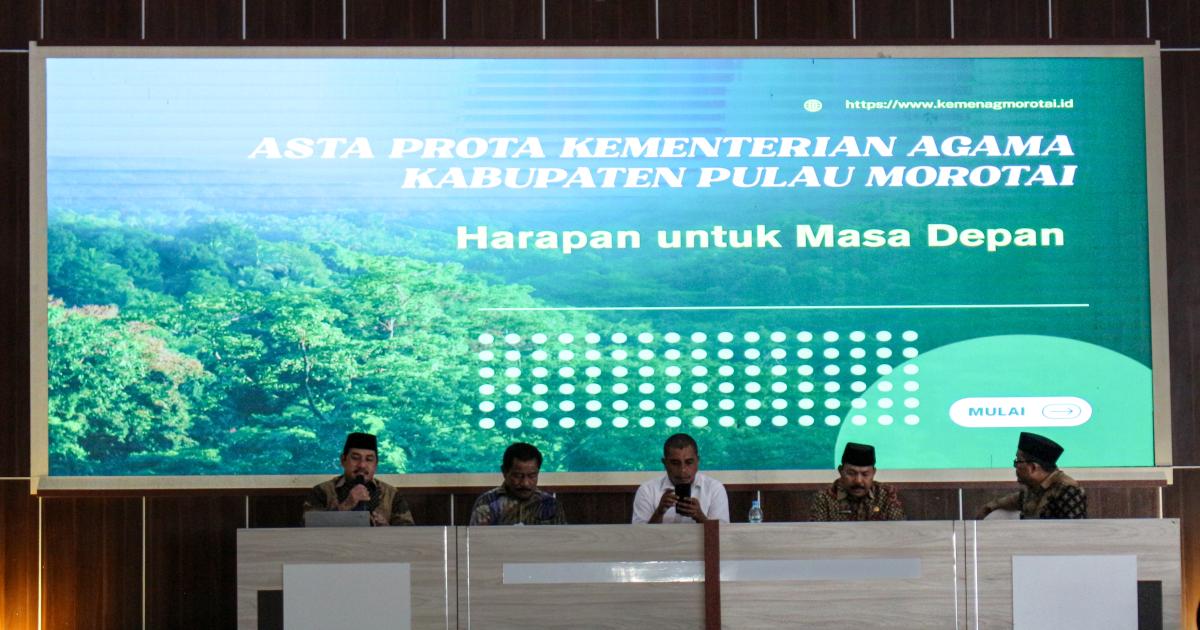 Ia menguraikan, Asta Protas Kemenag Pulau Morotai mencakup penguatan moderasi beragama berbasis cinta kemanusiaan, pengembangan ekoteologi, peningkatan layanan keagamaan yang berorientasi pendampingan masyarakat, penguatan pendidikan agama yang unggul dan humanis, pemberdayaan pesantren, ekonomi umat berbasis keadilan distributif, serta digitalisasi tata kelola birokrasi.