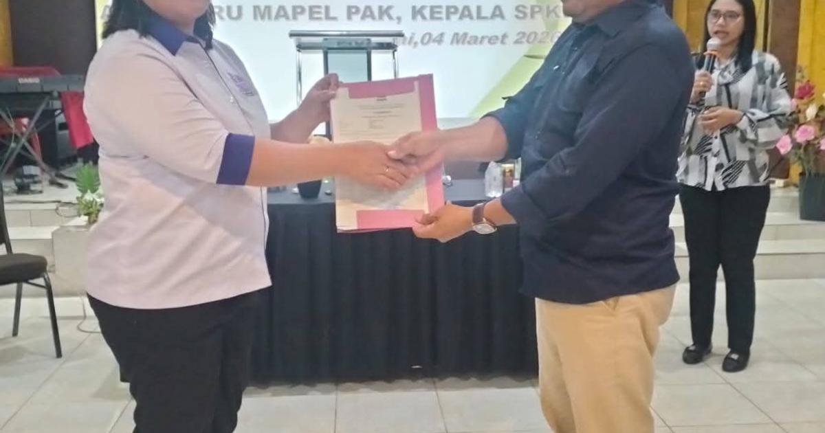 Di akhir kegiatan, Kabid BimKris bersama Ketua Tim Pendidikan Kristen menyerahkan sertifikat dan transkrip nilai guru PAK yang telah mengikuti PPG di IAKN Manado dan IAKN Ambon, disaksikan ASN Bimas Kristen serta para guru dan kepala satuan pendidikan Kristen yang hadir.
