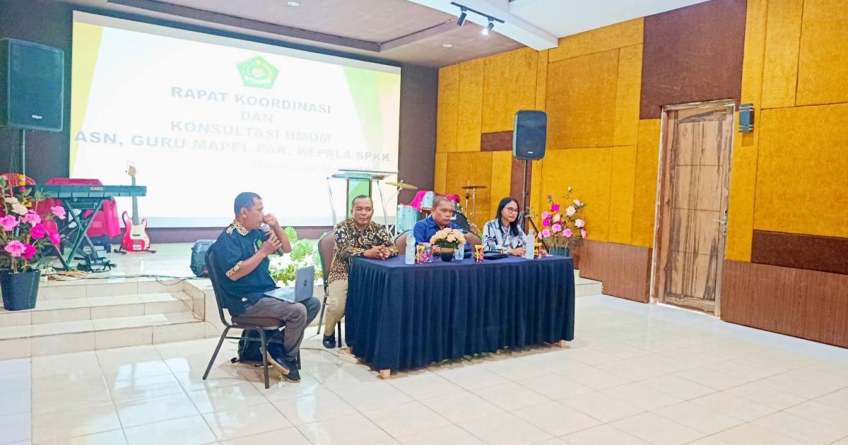 Morotai — (Humas Kemenag Morotai) — Kepala Bidang Bimas Kristen Kanwil Kemenag Provinsi Maluku Utara, Hans L. Tongotongo, menegaskan bahwa pelaksanaan Pendidikan Profesi Guru (PPG) mata pelajaran Pendidikan Agama Kristen (PAK) merupakan kebijakan pemerintah pusat melalui Kementerian Agama RI. Penegasan itu disampaikan dalam Rapat Koordinasi Pendidikan Agama dan Keagamaan Kristen Seksi Bimas Kristen Kantor Kemenag Kabupaten Pulau Morotai, Rabu (4/3/2026).