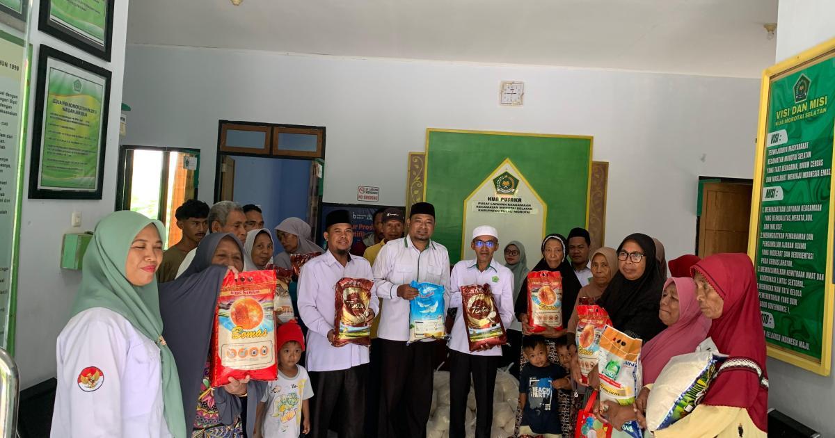 MOROTAI — (Humas Kemenag Morotai) — Kantor Kementerian Agama Kabupaten Pulau Morotai bersama Kantor Urusan Agama (KUA) Morotai Selatan menyalurkan bantuan kepada masyarakat melalui Program Sedekah Beras, Selasa (10/3/2026). Program yang menjadi salah satu unggulan Kemenag dan KUA Morotai Selatan ini berhasil menghimpun ratusan kilogram bahan pokok dari para dermawan untuk kemudian disalurkan kepada warga yang membutuhkan.