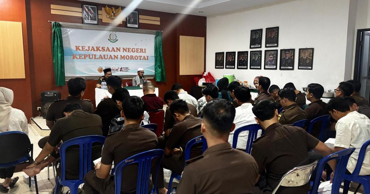 Morotai – (Humas Kemenag Morotai) – Kepala Sub Bagian Tata Usaha Kantor Kementerian Agama Kab. Pulau Morotai, H. Musanif Sibua, S.Ag., MM, menghadiri kegiatan buka puasa bersama Keluarga Besar Kejaksaan Negeri Pulau Morotai, Senin (23/02/2026). Kegiatan yang dirangkaikan dengan tausiyah Ramadan itu berlangsung hangat dan penuh kekeluargaan.